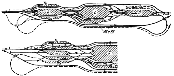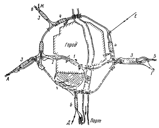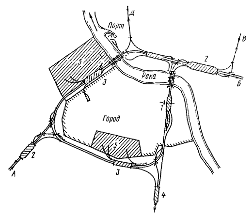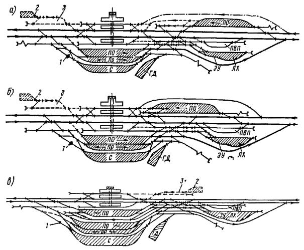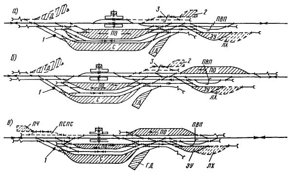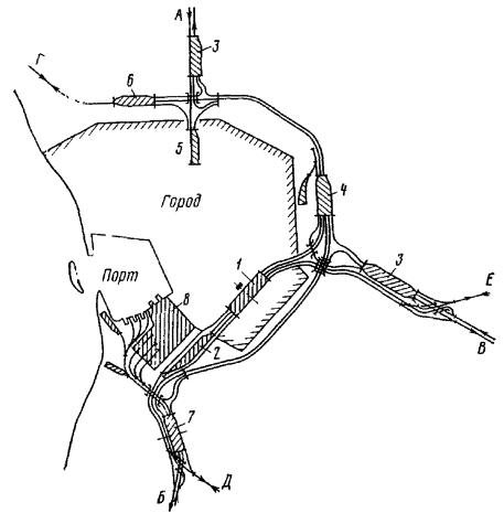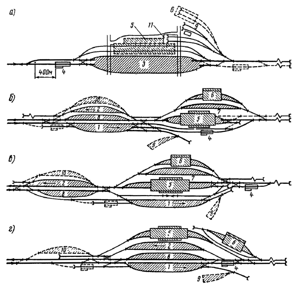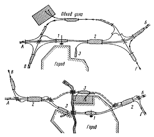 Генеральные схемы и ТЭО развития железнодорожных узлов и крупных станций следует разрабатывать в увязке с проектами планировки городов, промышленных узлов (районов) и развития всех видов транспорта как составных частей единой транспортной системы, определяя взаимное расположение станций, подходов главных и соединительных путей и обходов с учетом перспективы роста прилегающих населенных мест, промышленных предприятий и сооружений других видов транспорта.