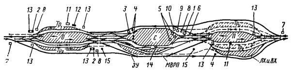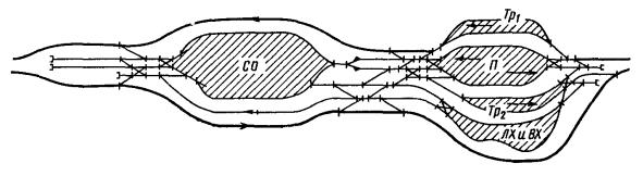 Проекты новых и развития существующих станций и узлов следует разрабатывать и осуществлять комплексно - по путевому, локомотивному, вагонному, пассажирскому, грузовому и энергетическому хозяйствам, устройствам СЦБ и водоснабжения и др. Технологически однородные сооружения и устройства различных служб, размещаемые на станциях и в узлах (административные, производственные и вспомогательные здания и помещения), должны быть, как правило, объединены. В проектах необходимо также предусматривать широкое кооперирование сооружений и устройств железной дороги с аналогичными сооружениями и устройствами других видов транспорта, промышленных предприятий и населенных пунктов, ремонтного хозяйства, устройств энергоснабжения, водоснабжения, канализации и других инженерных коммуникаций, а также создание общих жилых комплексов, учреждений культурно-бытового назначения и др.
