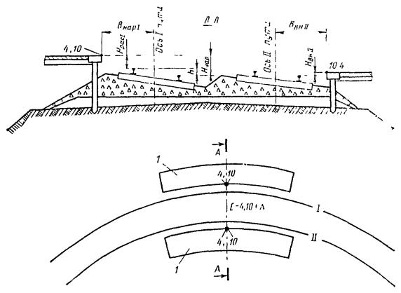 Уширение земляного полотна в кривых с наружной стороны (табл. 6.2)