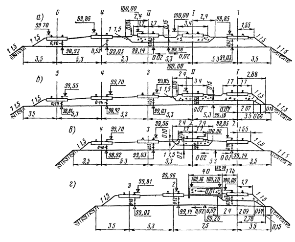 - поперечные верха земляного полотна (табл. 6.3)