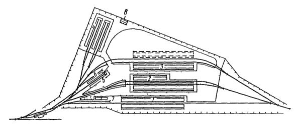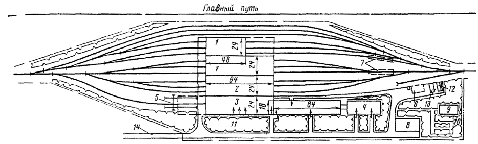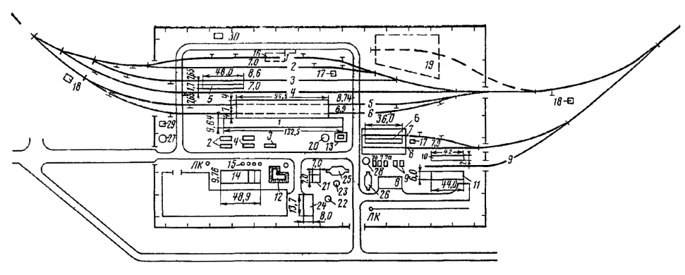 Проекты строительства (развития) станций должны устанавливать взаимное расположение парков, устройств локомотивного и вагонного хозяйств, пассажирских, грузовых и других устройств станций и должны быть также увязаны с перспективным планом и генеральной схемой их развития, с планировкой городов и населенных мест и развитием других видов транспорта, промышленности и сельского хозяйства.