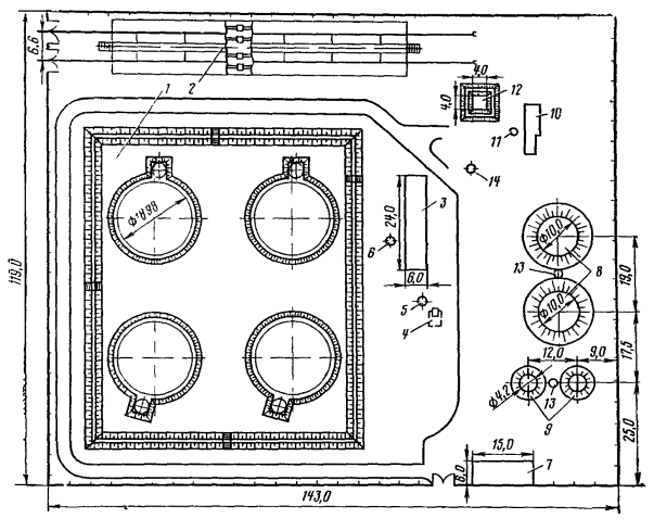 Проектные планы станций и узлов накладывают на планы местности в горизонталях и составляют в масштабах, указанных в табл. 1.1 и 1.2.