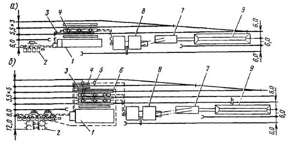 Проектирование железнодорожных узлов должно осуществляться на основе генеральных схем их развития, а сортировочных, пассажирских и других крупных и сложных станций - на основе технико-экономических обоснований (ТЭО)1, подтверждающих экономическую целесообразность и хозяйственную необходимость их проектирования и строительства и разрабатываемых в соответствии с указаниями о составе, порядке разработки и утверждения технико-экономических обоснований проектирования и строительства предприятий, зданий и сооружений. ТЭО утверждаются министерствами и ведомствами СССР и советами министров союзных республик, при этом по крупным и сложным объектам необходимо согласование с Госпланом СССР и Госстроем СССР.