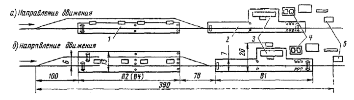 сдвоенного карликового с двумя головками, расположенного в кривых участках приемо-отправочных путей, оборудованных рельсовыми цепями (табл. 16.37)