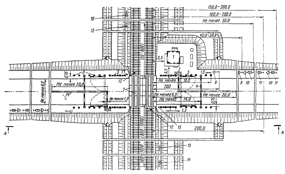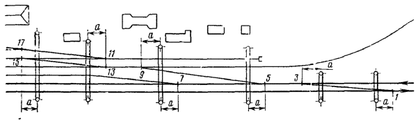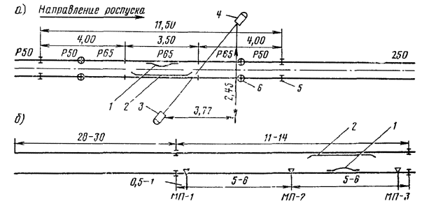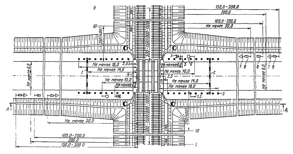 Расстояния от центра стрелочного перевода до светофора: