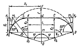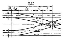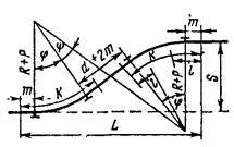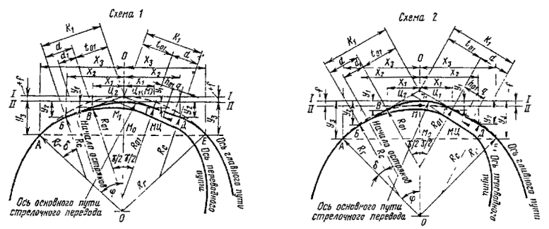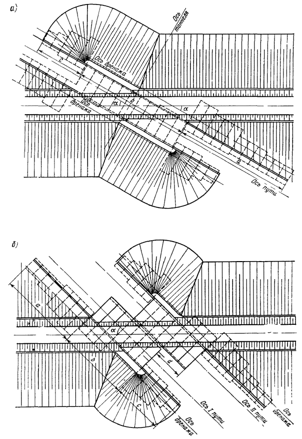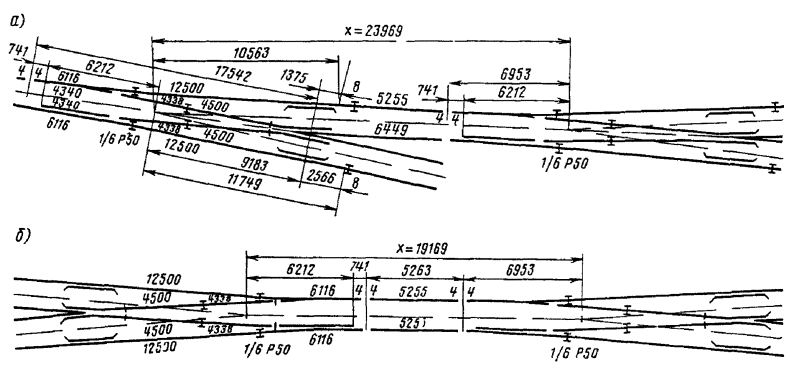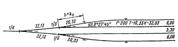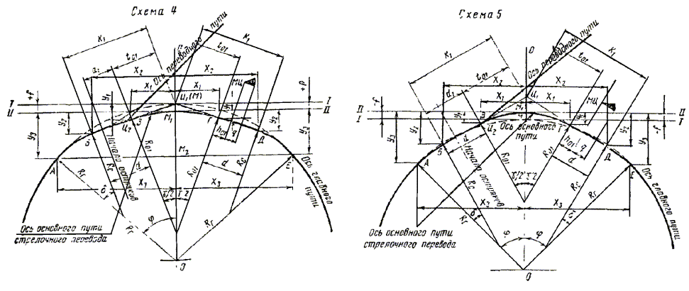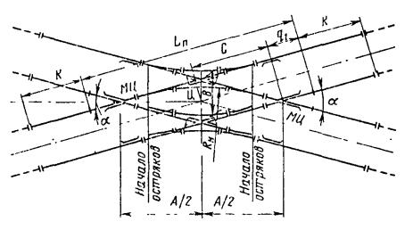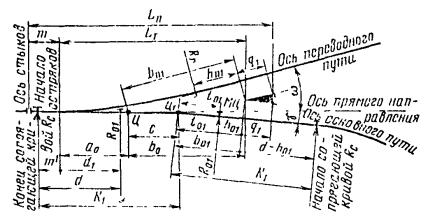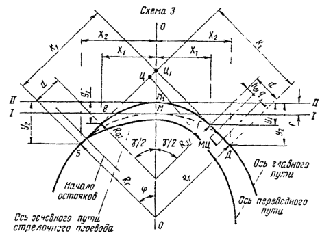 - круговых кривых при углах, кратных углам крестовин (табл. 17.9)