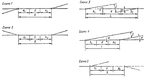 Схемы параллельного смещения пути и расчетные формулы (табл. 16.43)