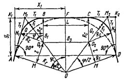 Элементы для разбивки главных точек кривых (табл. 16.42)