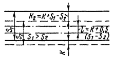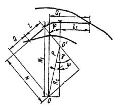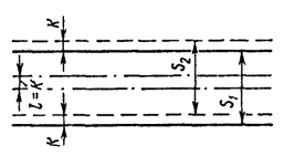 Увеличение горизонтальных расстояний в кривых между осями путей: