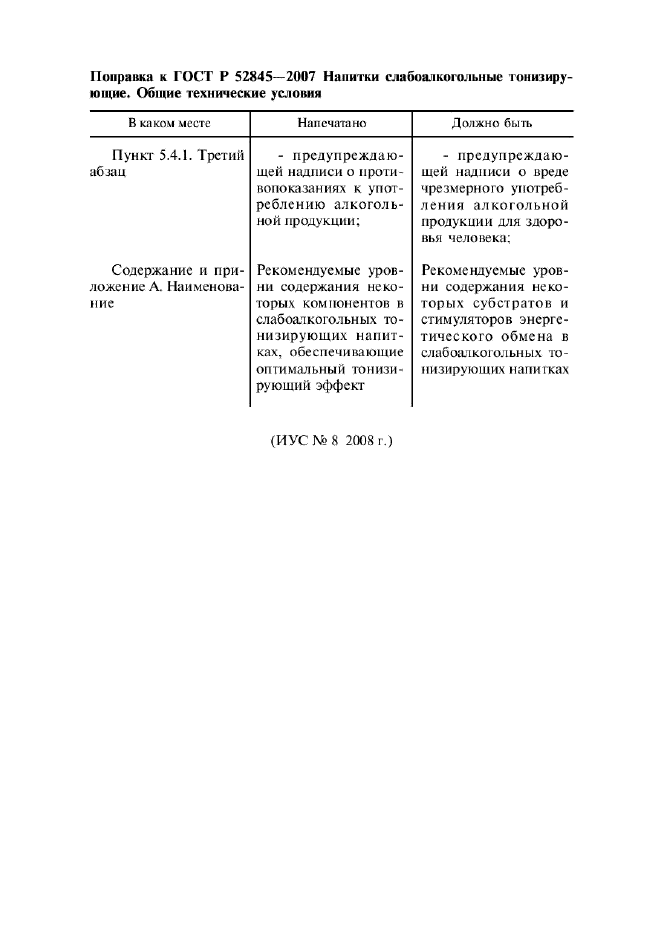 | Название рус.: | Напитки слабоалкогольные тонизирующие. Общие технические условия |