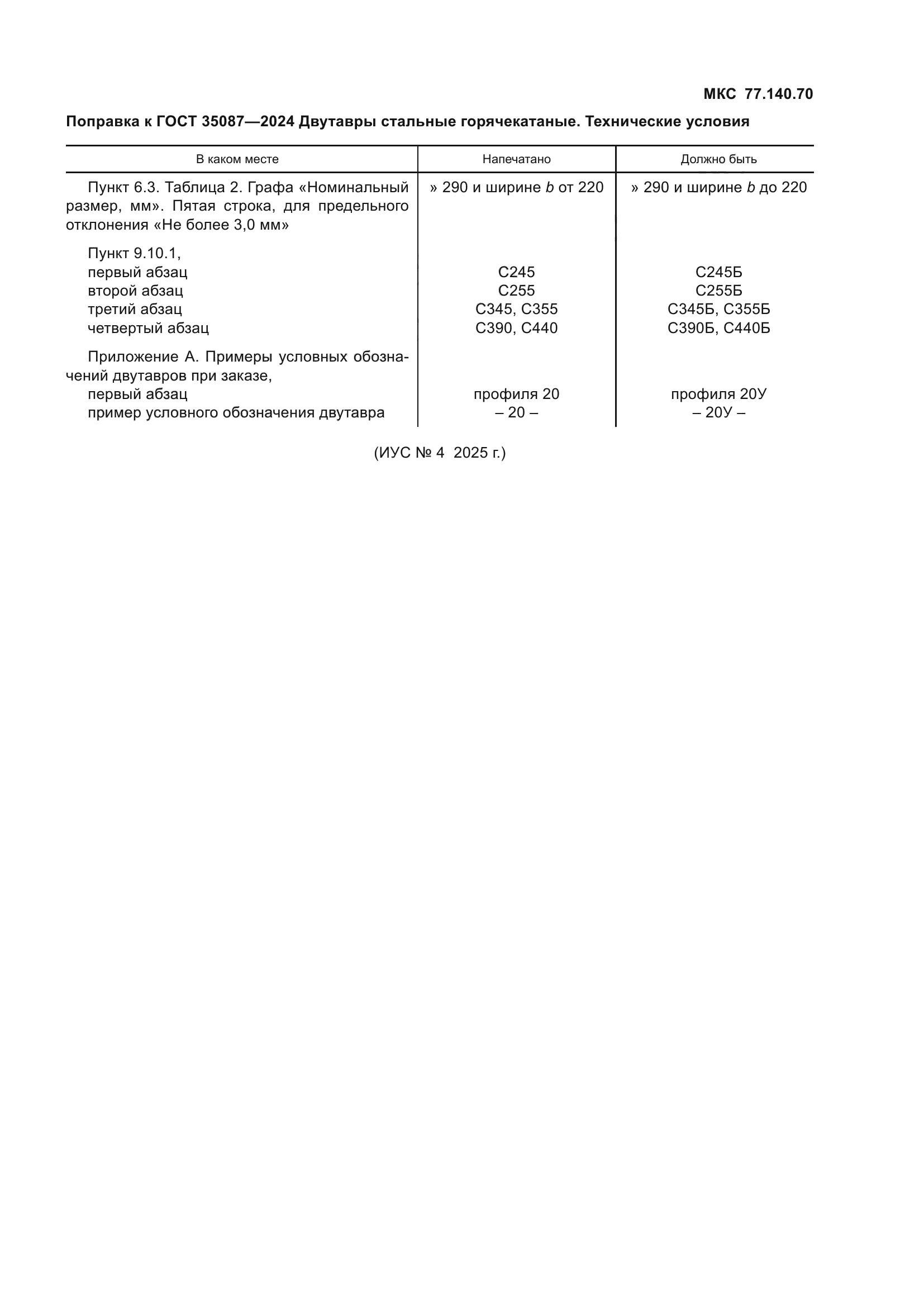 | Обозначение: | Поправка к ГОСТ 35087-2024 |