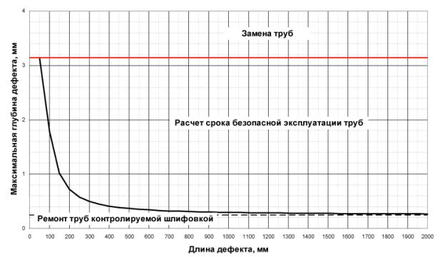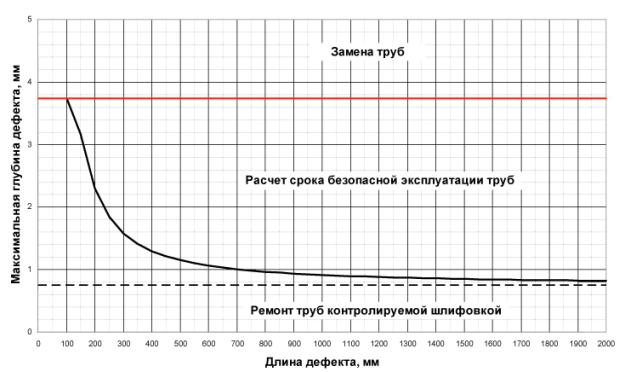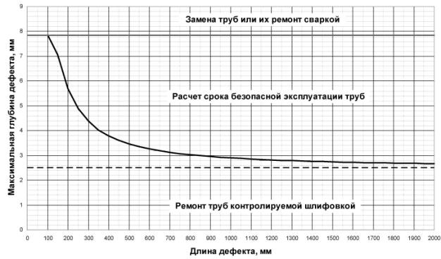 7.6 Указанные в п.п. 7.5, 7.6 сроки вычисляются для рассматриваемой дефектной области. Если на трубе имеются другие дефектные области, то для получения срока ремонта дефектной трубы необходимо выполнить расчет для всех областей и принять меньшие значения.