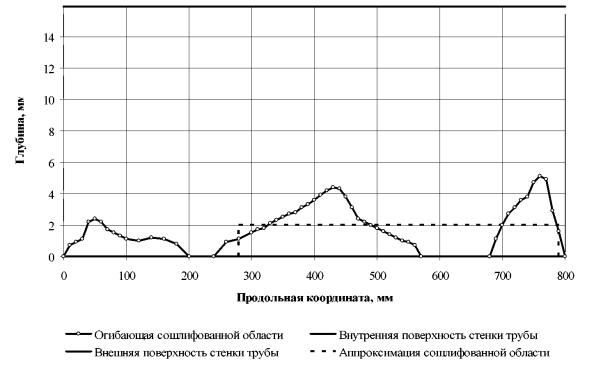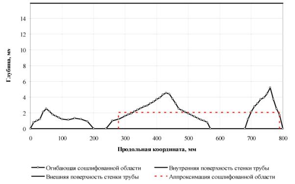 Сошлифованная область - область трубы с одной или несколькими выемками, образовавшимися при устранении дефекта или нескольких близлежащих дефектов контролируемой шлифовкой.