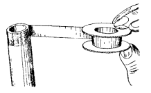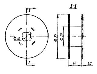 8. Для удобства уплотнения резьбовых соединений лента должна быть перемотана с буксы по 25-30 м на небольшие катушки. Для перемотки ленты могут быть использованы катушки из-под кинопленки узкопленочных киносъемочных аппаратов (рис. 1).