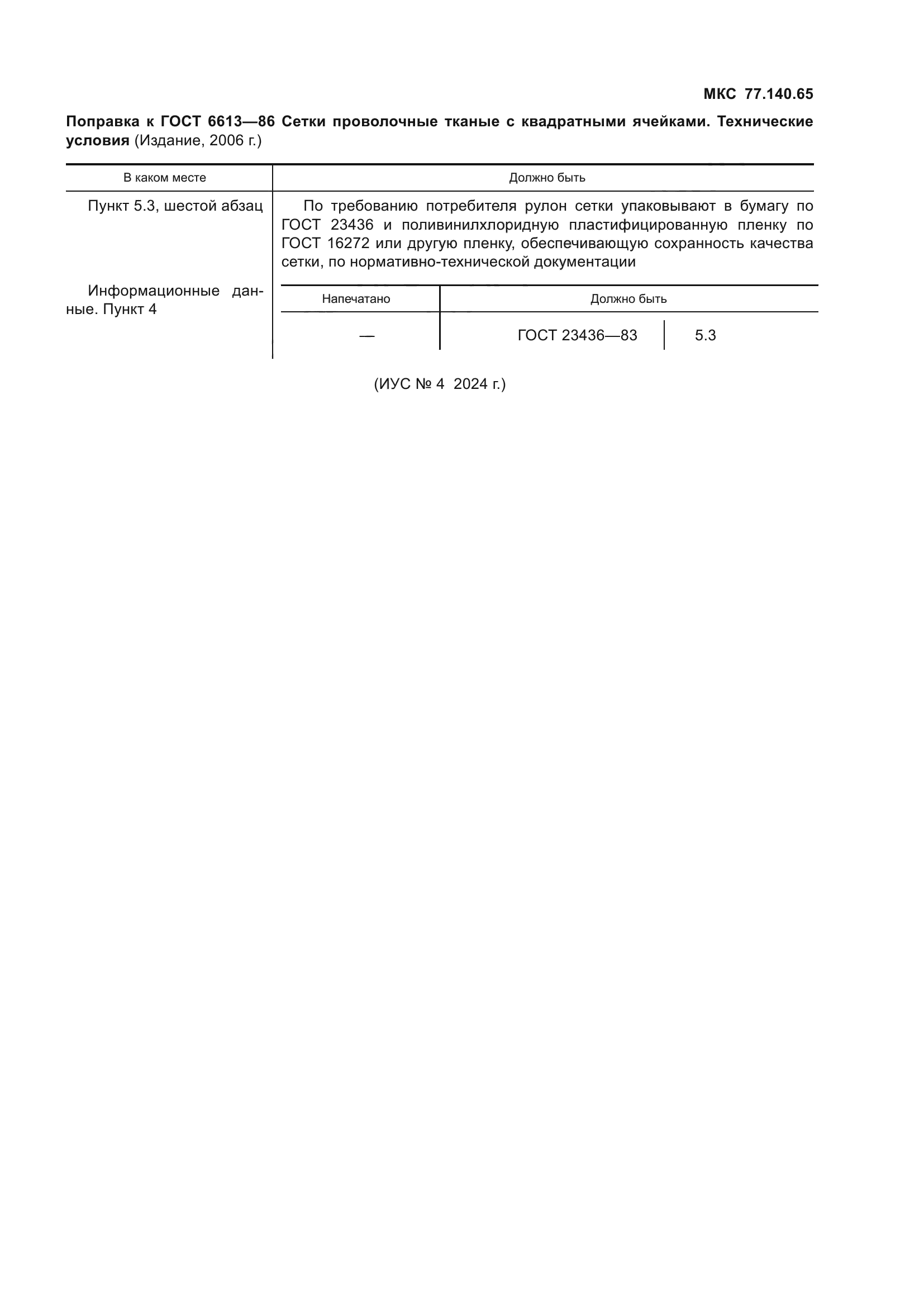 | Обозначение: | Поправка к ГОСТ 6613-86 |