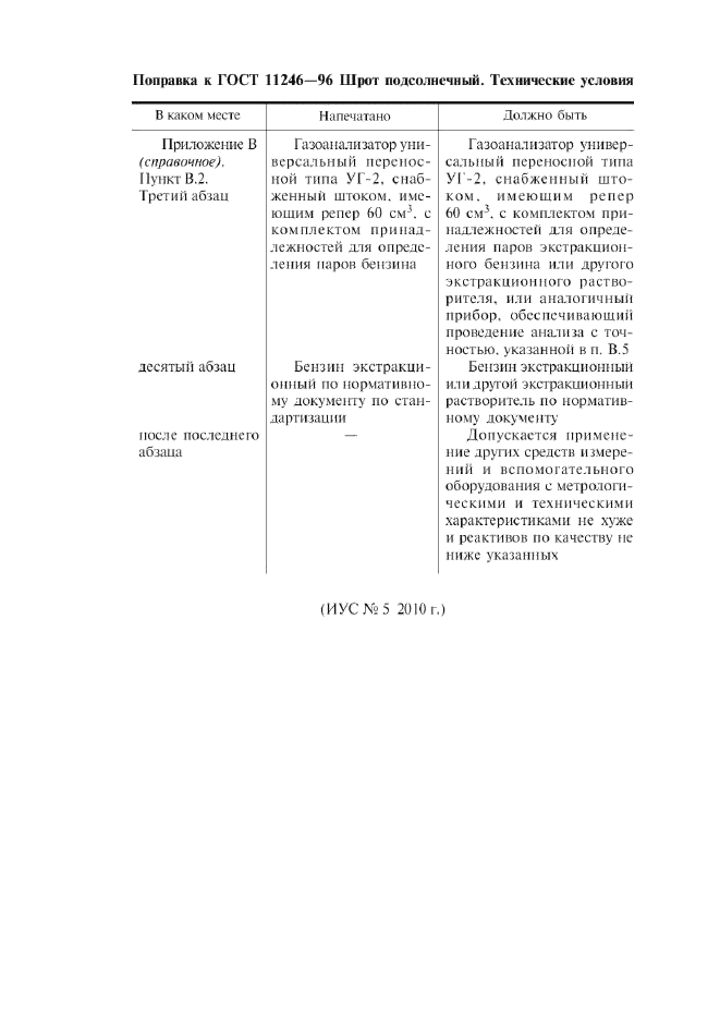 | Приложение №2: | Поправка к ГОСТ 11246-96 |