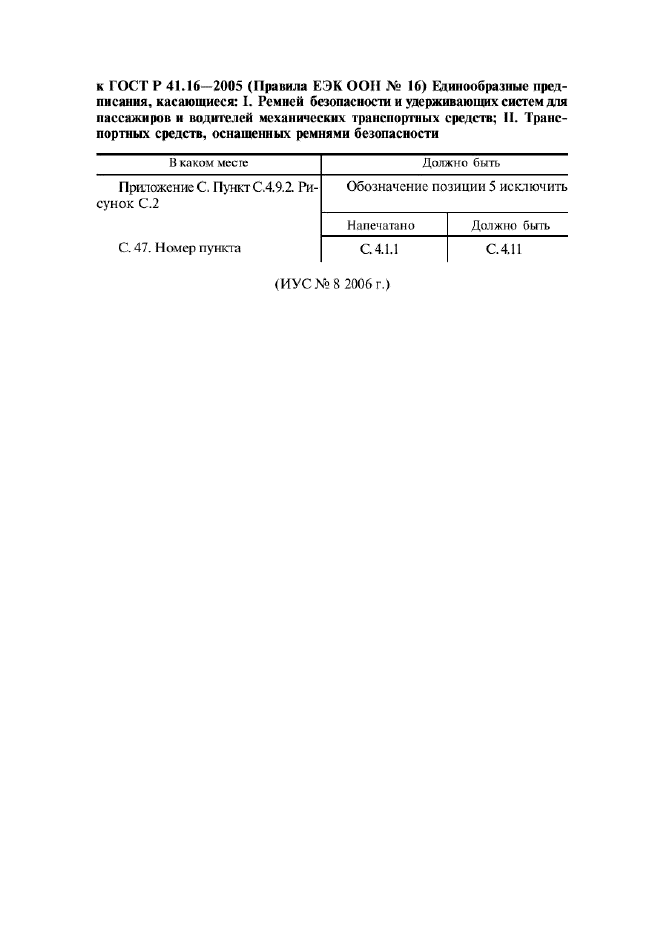 | Приложение №1: | Поправка к ГОСТ Р 41.16-2005 |