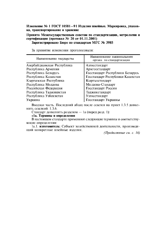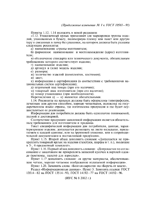 | Взамен в части: | ГОСТ 10581-82 в части швейных изделий |