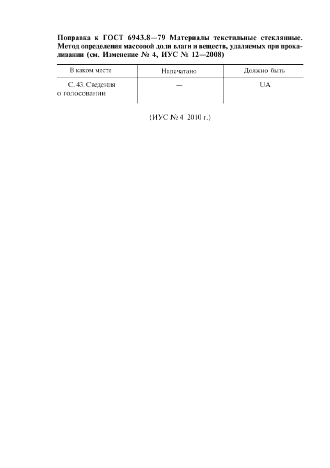 | Приложение №4: | Поправка к ГОСТ 6943.8-79 |