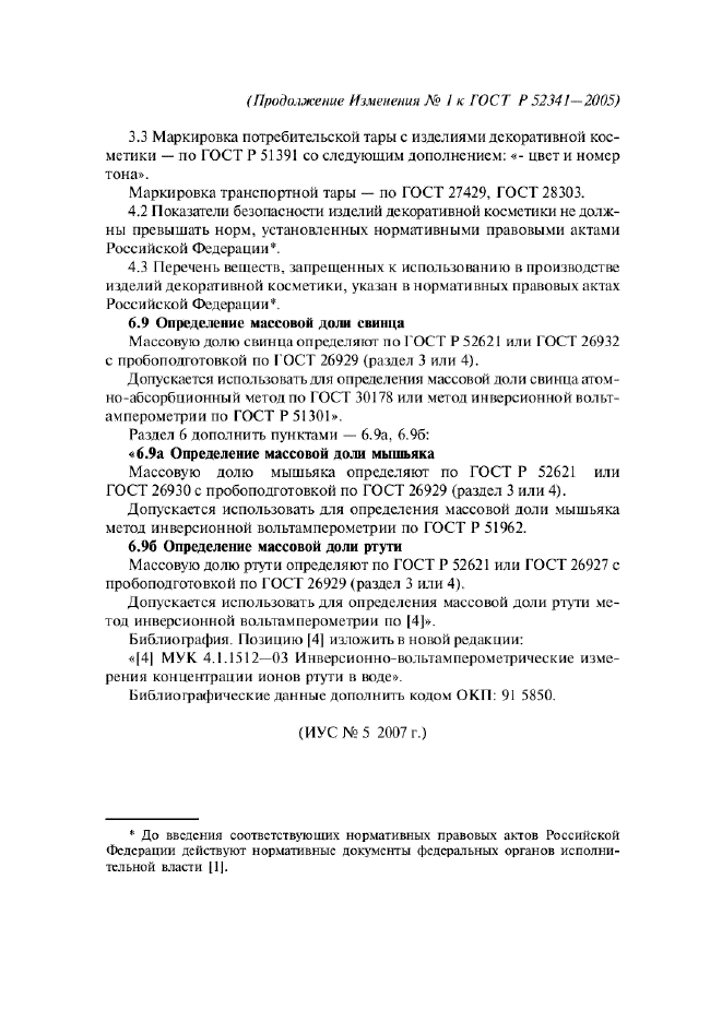 | Приложение №1: | Изменение №1 к ГОСТ Р 52341-2005 |