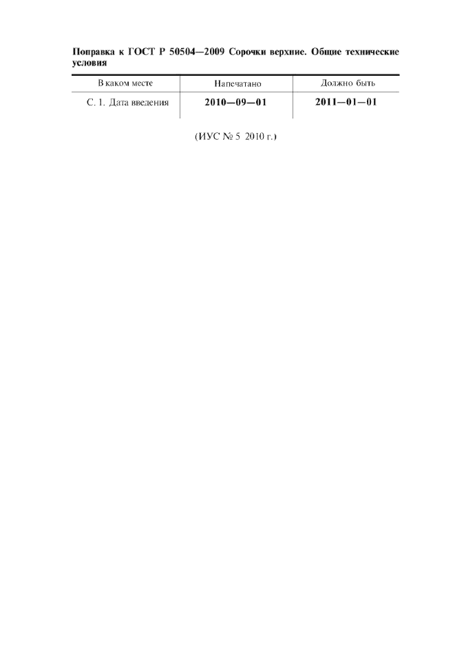 | Приложение №1: | Поправка к ГОСТ Р 50504-2009 |