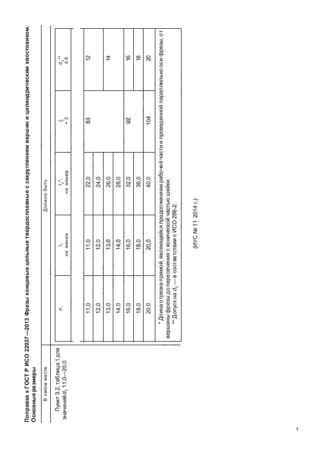 | Название рус.: | Фрезы концевые цельные твердосплавные с закруглением вершин и цилиндрическим хвостовиком. Основные размеры |