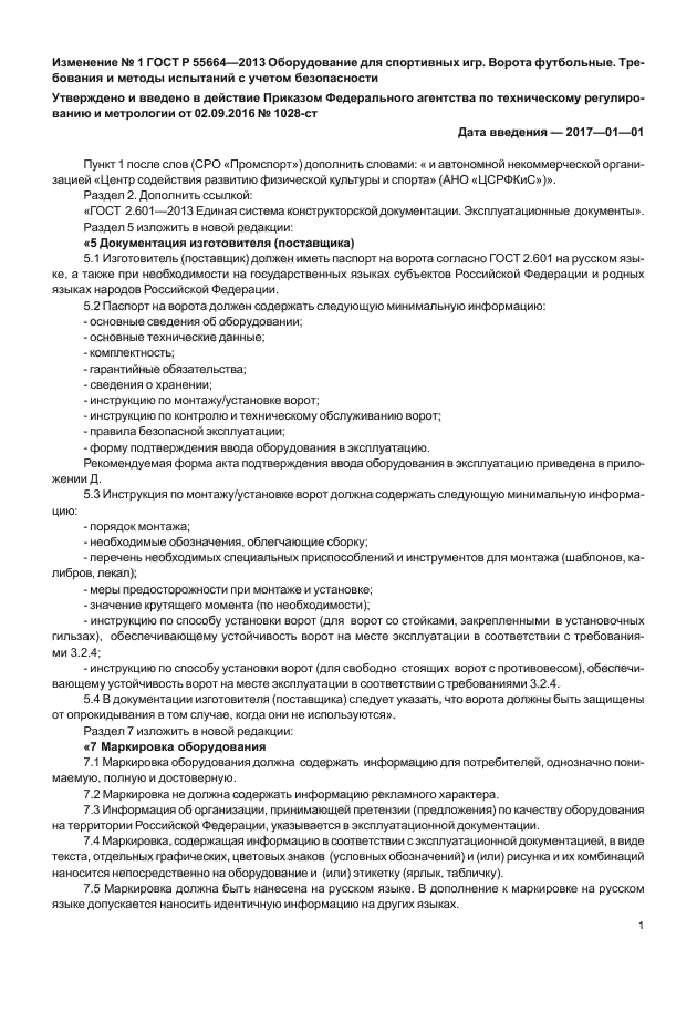 | Область применения: | Настоящий стандарт распространяется на оборудование для спортивных игр. Стандарт устанавливает функциональные требования и требования безопасности к футбольным воротам четырех типов и двух размеров для проведения соревнований и тренировок на открытых и закрытых спортивных площадках |