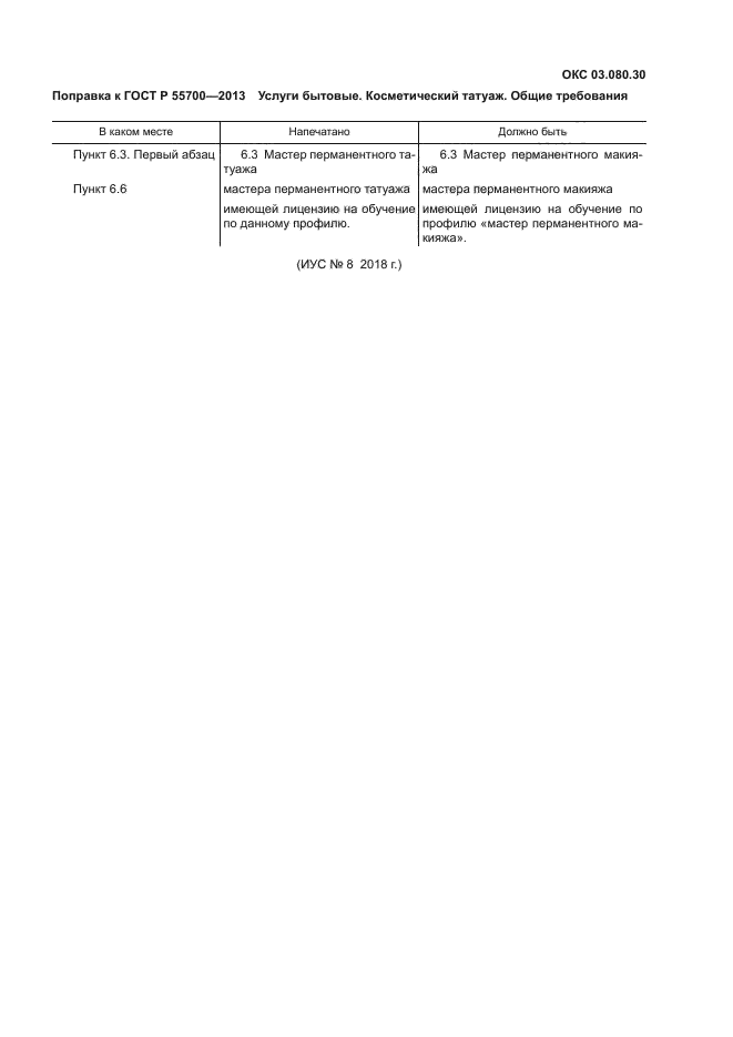 | Область применения: | Настоящий стандарт распространяется на организации и предприятия, независимо от их организационно-правовой формы, и на индивидуальных предпринимателей, оказывающих услуги косметического татуажа. Стандарт не распространяется на медицинские услуги |