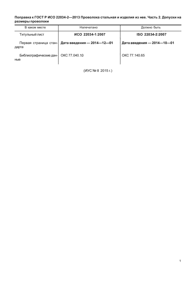 | Приложение №1: | Поправка к ГОСТ Р ИСО 22034-2-2013 |
