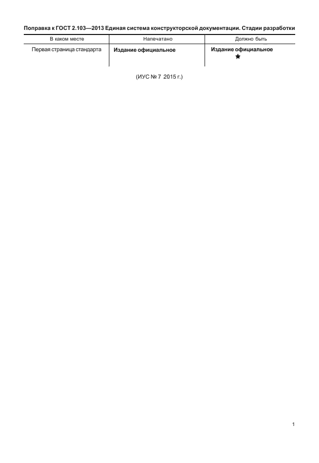 | Приложение №1: | Поправка к ГОСТ 2.103-2013 |
