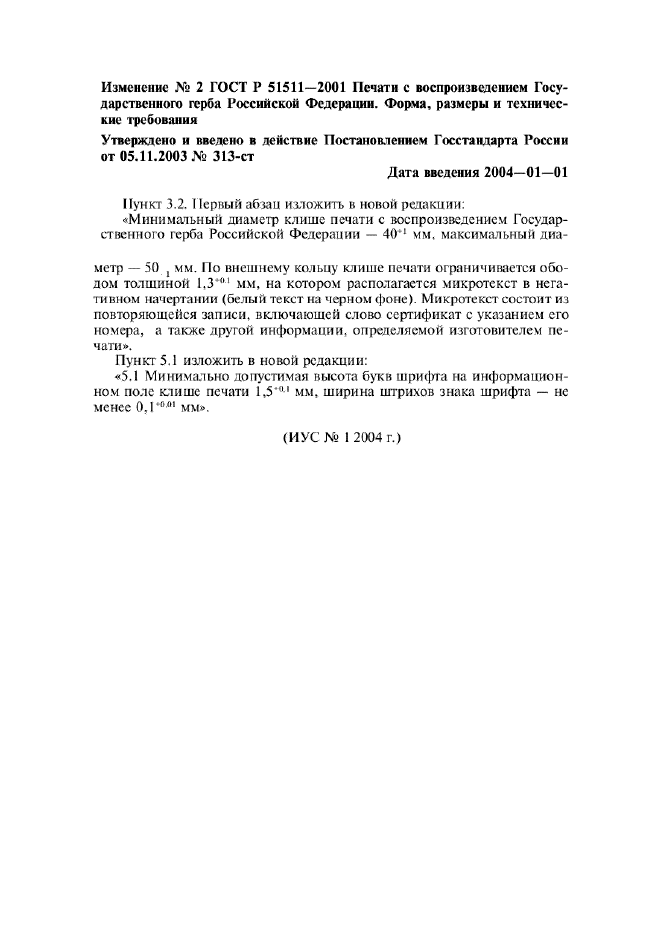| Приложение №1: | Изменение №1 к ГОСТ Р 51511-2001 |