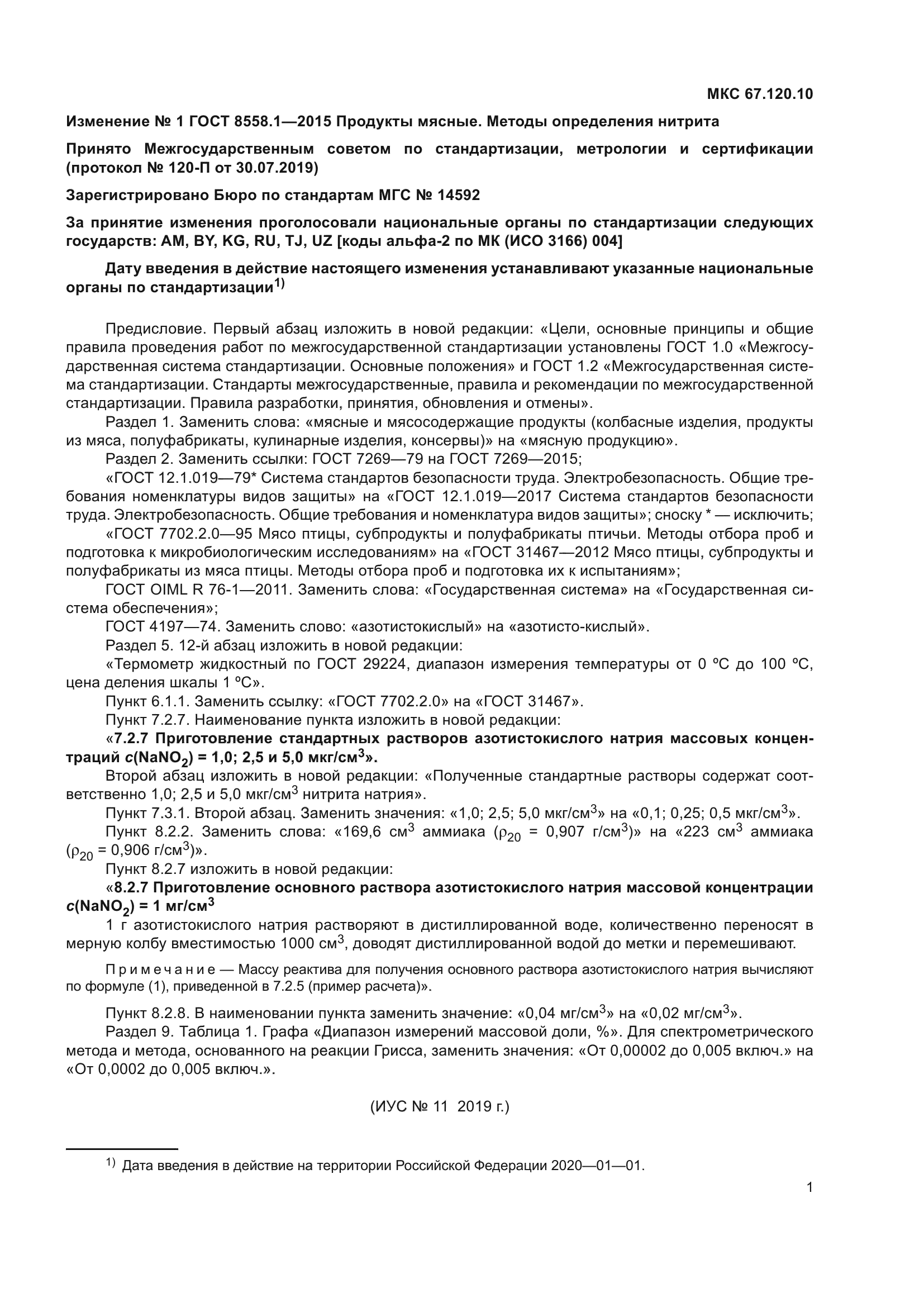| Приложение №1: | Изменение к ГОСТ 8558.1-2015. Поправка к изменению |
