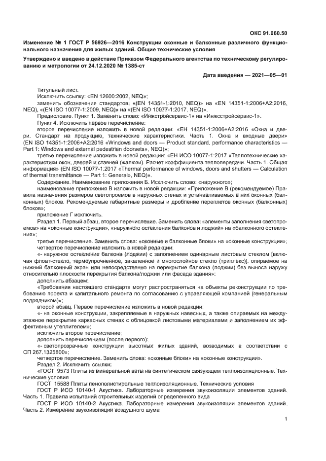 | Приложение №1: | Изменение №1 к ГОСТ Р 56926-2016 |