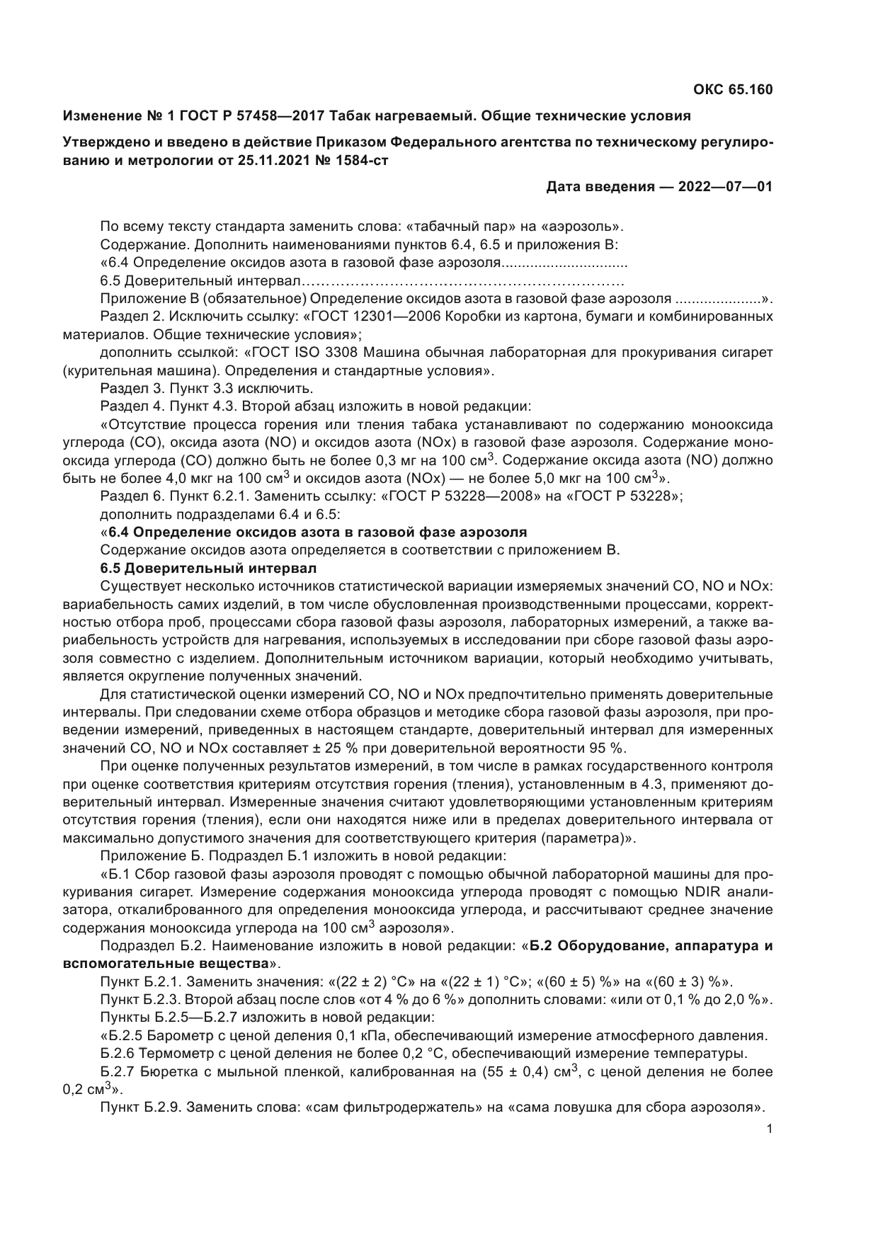 | Приложение №1: | Изменение №1 к ГОСТ Р 57458-2017 |