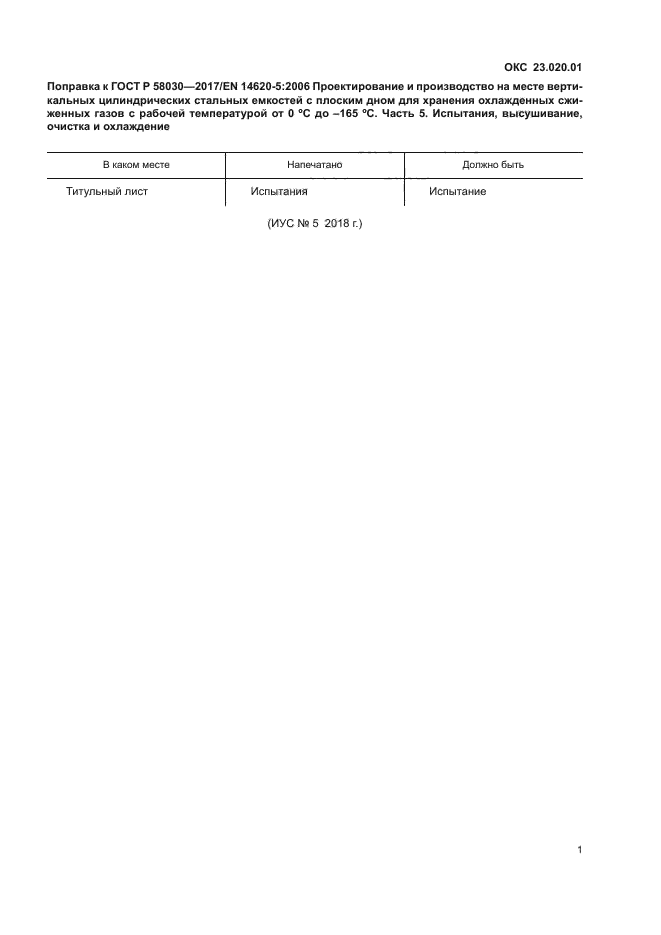 | Обозначение: | Поправка к ГОСТ Р 58030-2017 |