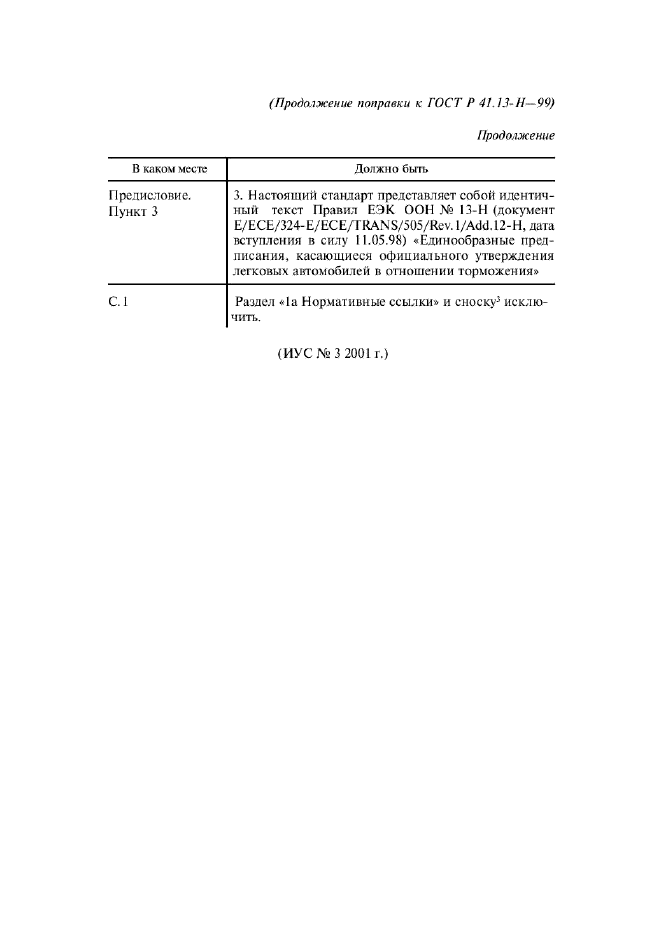 | Приложение №1: | Поправка к ГОСТ Р 41.13-H-99 |