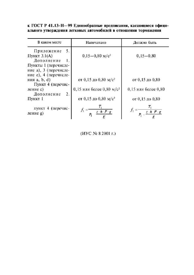 | Приложение №1: | Поправка к ГОСТ Р 41.13-Н-99 |