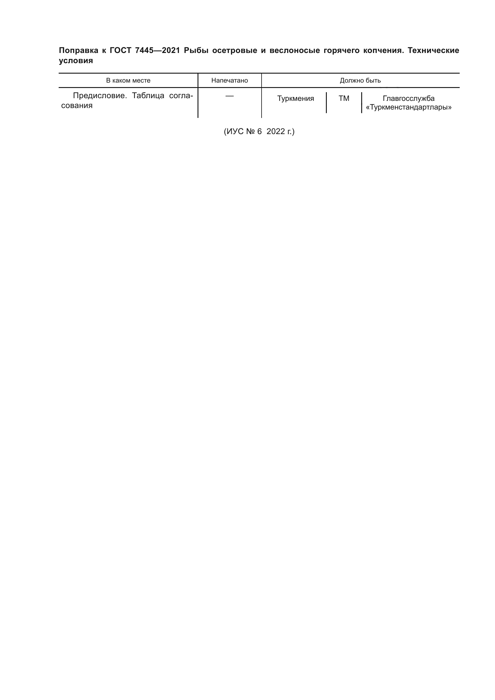 | Приложение №1: | Поправка к ГОСТ 7445-2021 |