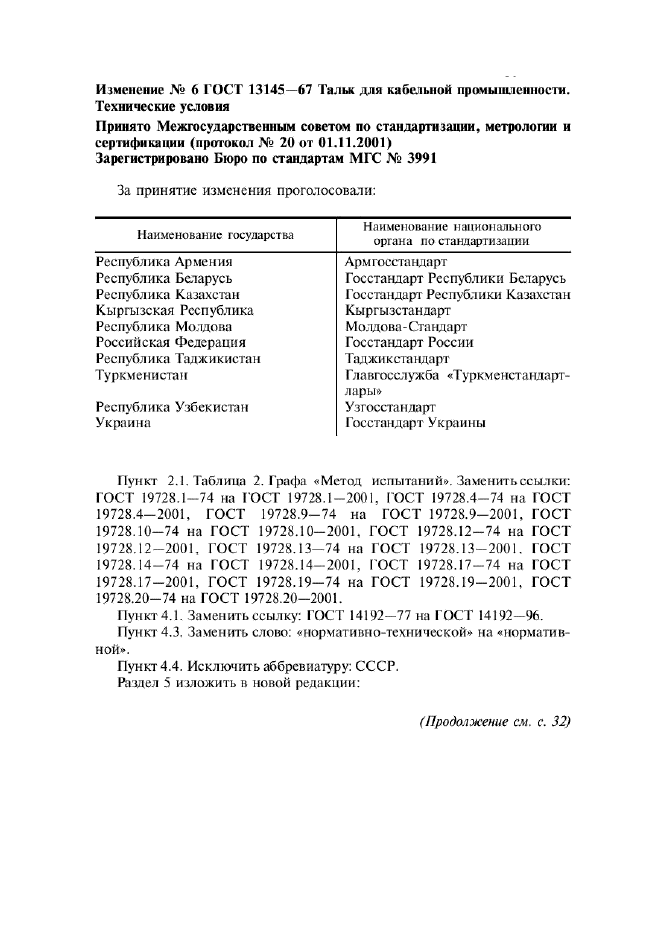 | Обозначение: | Изменение №6 к ГОСТ 13145-67 |