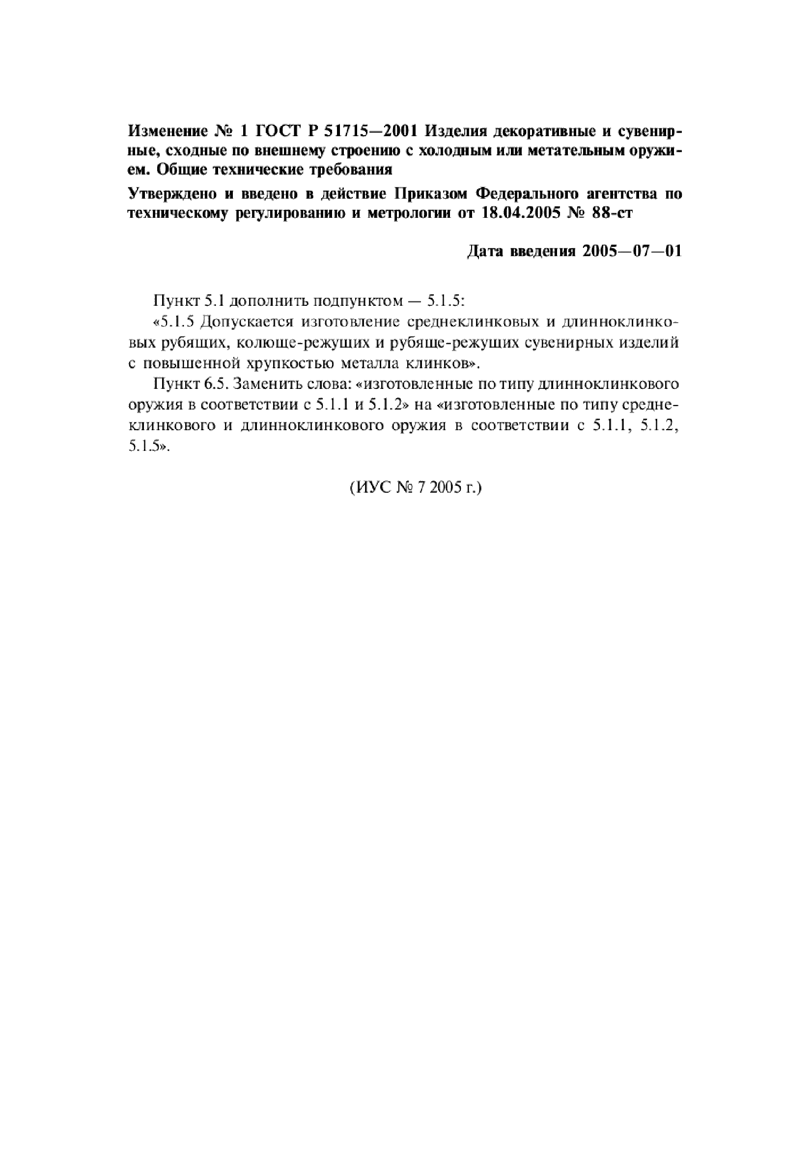 | Приложение №1: | Изменение №1 к ГОСТ Р 51715-2001 |