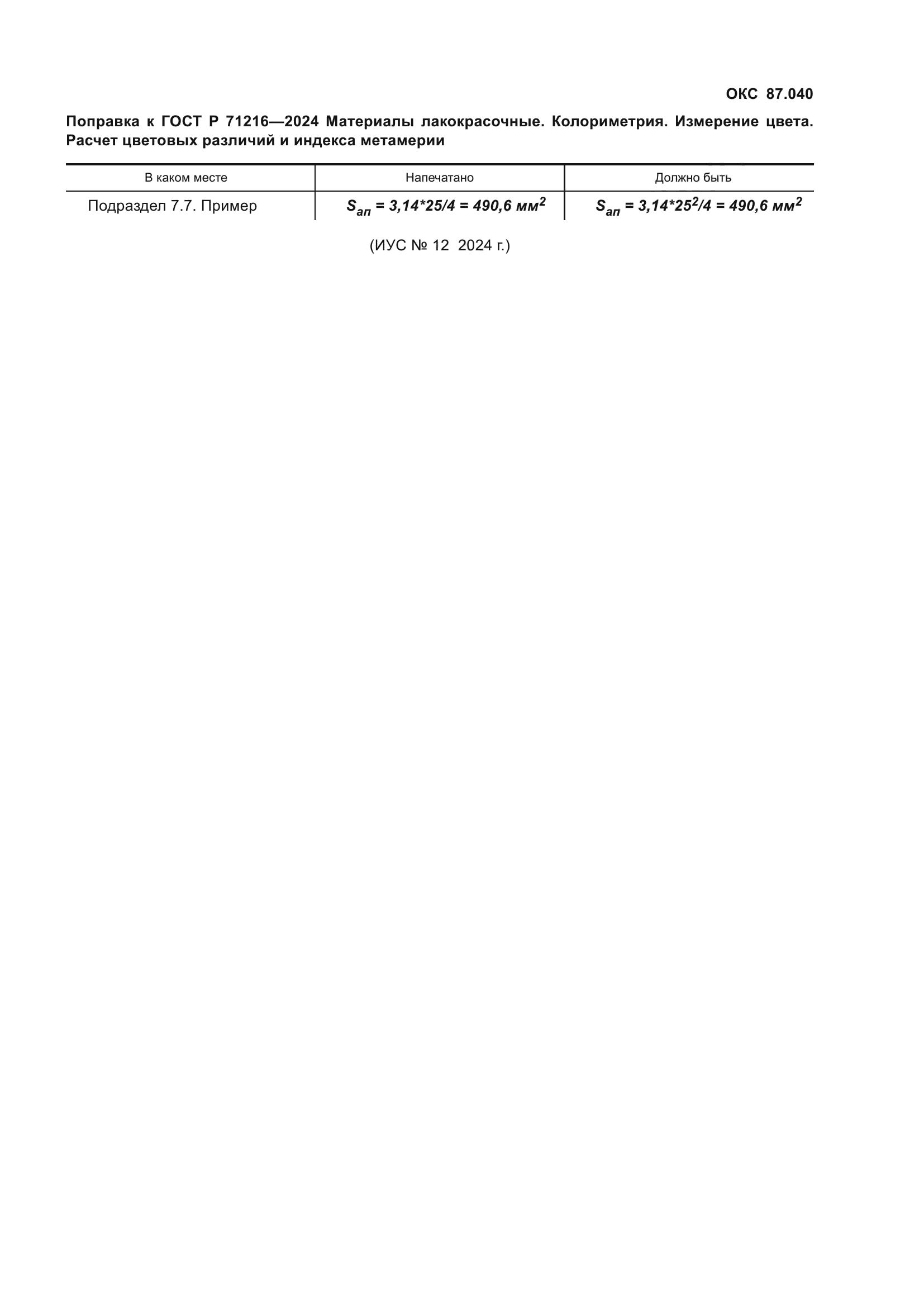 | Приложение №1: | Поправка к ГОСТ Р 71216-2024 |