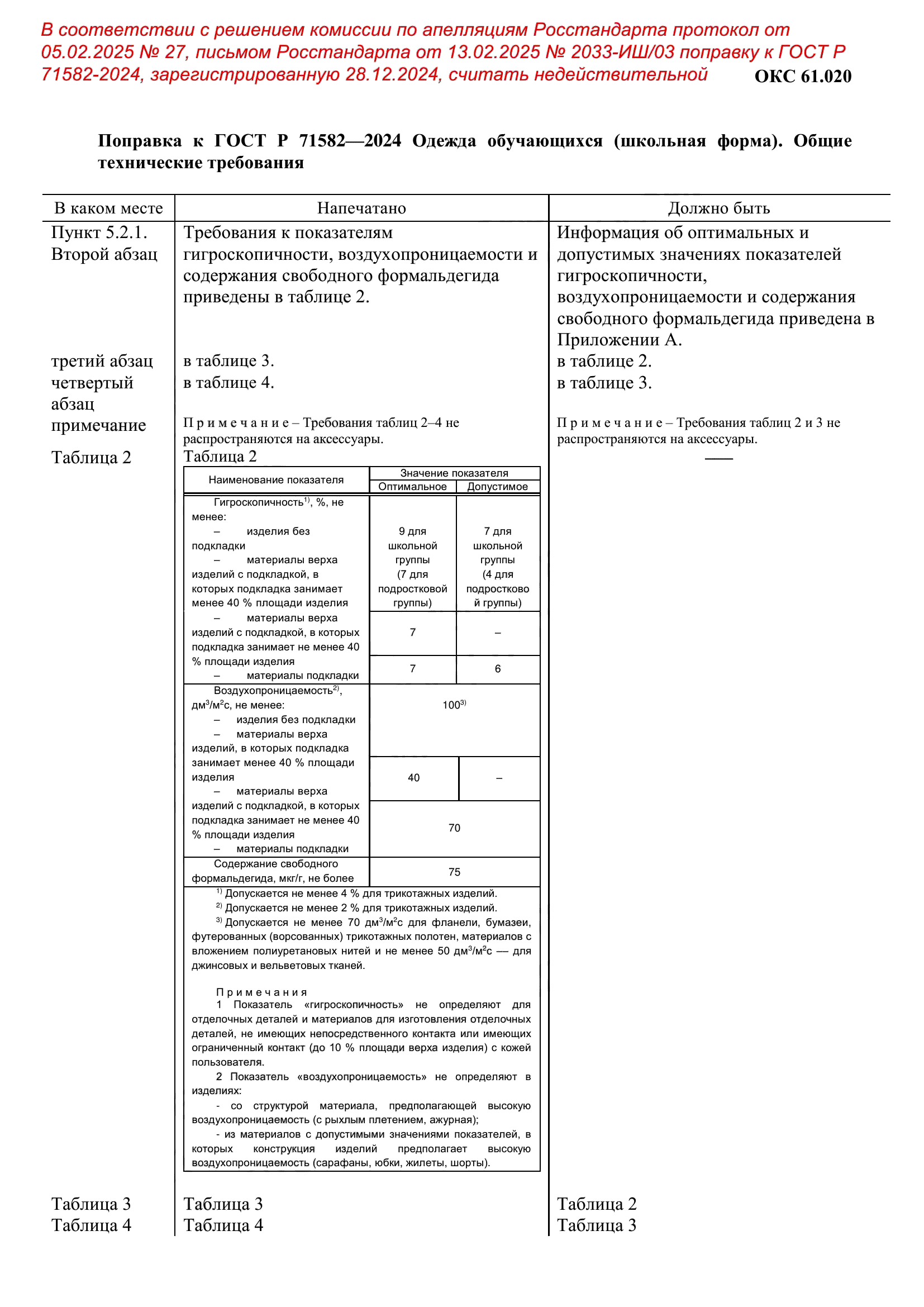 | Приложение №1: | Поправка к ГОСТ Р 71582-2024 |