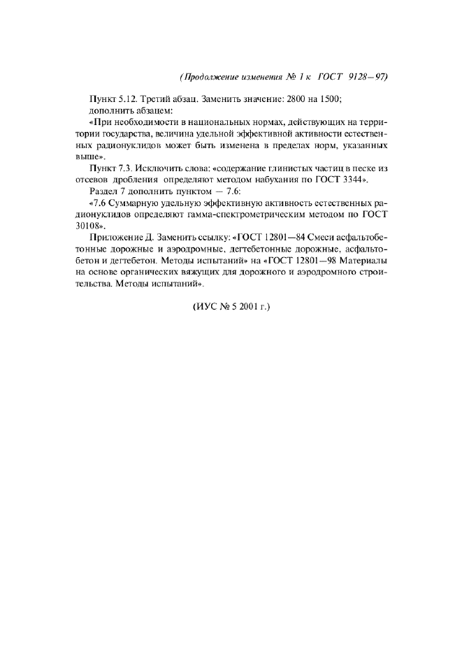 | Приложение №1: | Изменение №1 к ГОСТ 9128-97 |