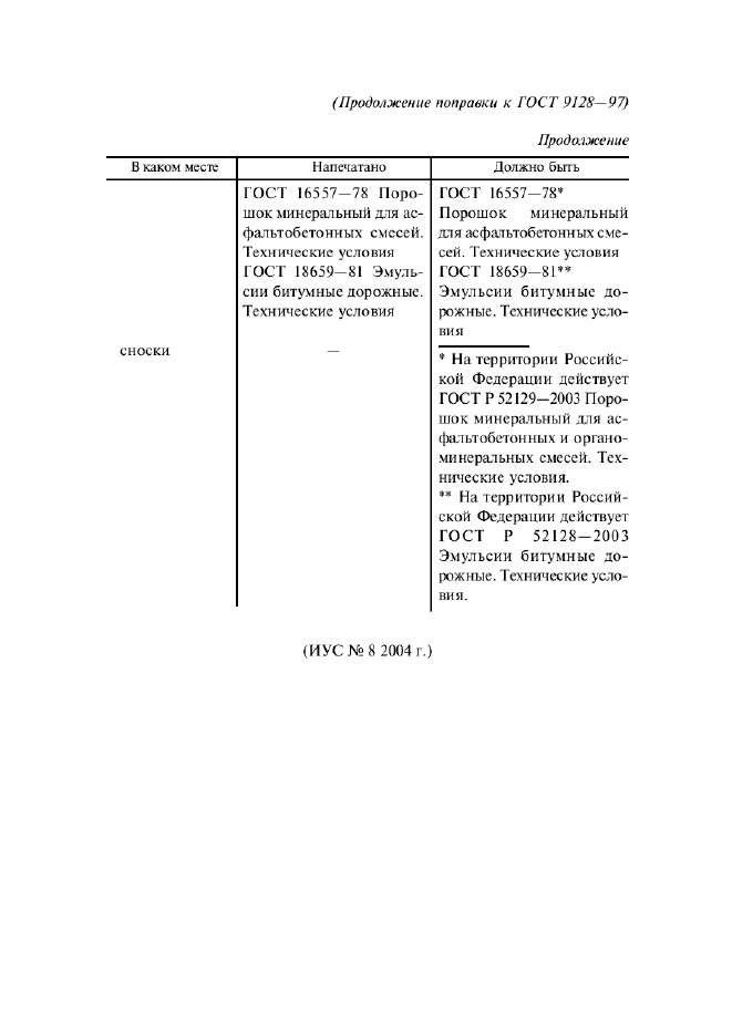 | Обозначение: | Поправка к ГОСТ 9128-97 |