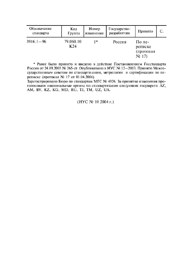 | Приложение №2: | Изменение №1 к ГОСТ 3916.1-96 |
