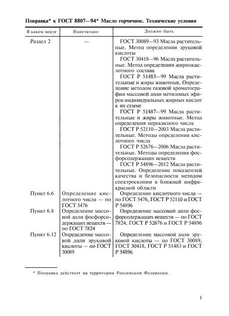 | Приложение №1: | Изменение к ГОСТ 8807-94. Поправка к изменению |